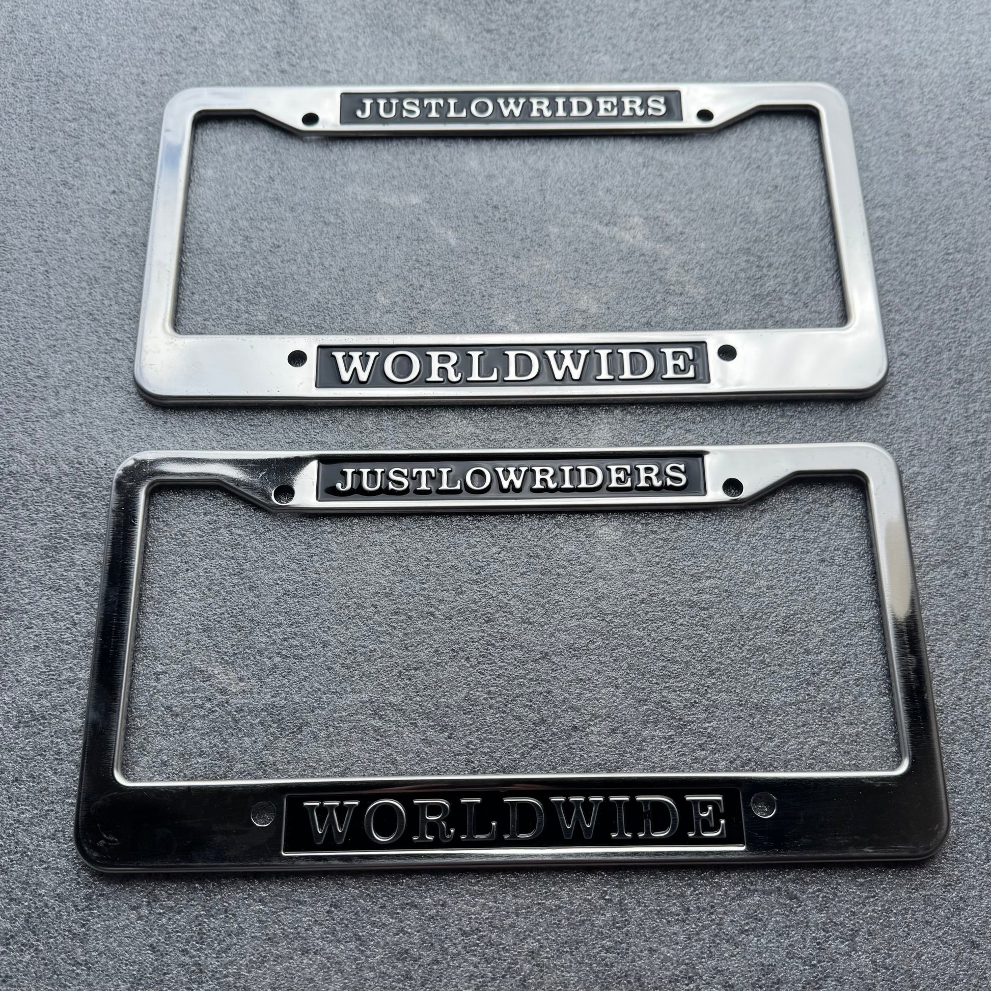 Level up your ride with this clean, heavy-duty chrome plate frame stamped with the JUSTLOWRIDERS WORLDWIDE name. Built for those who live the lifestyle — from the streets to the shows.