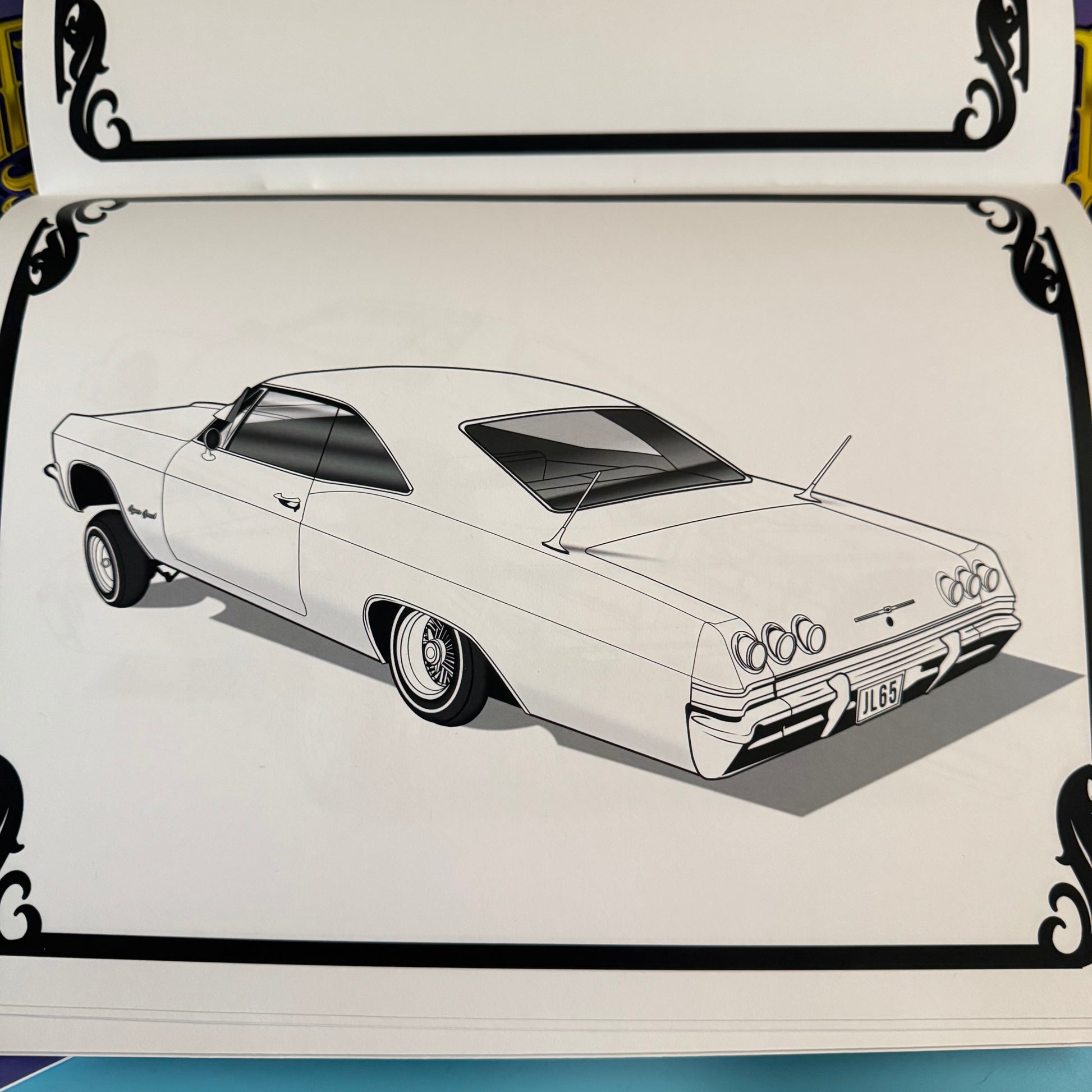 The JL 4th Issue Coloring Book is packed with hand-drawn illustrations inspired by classic rides and real lowrider energy. From hopping Impalas to iconic cruisers, every page is designed to celebrate the culture and creativity behind the movement.