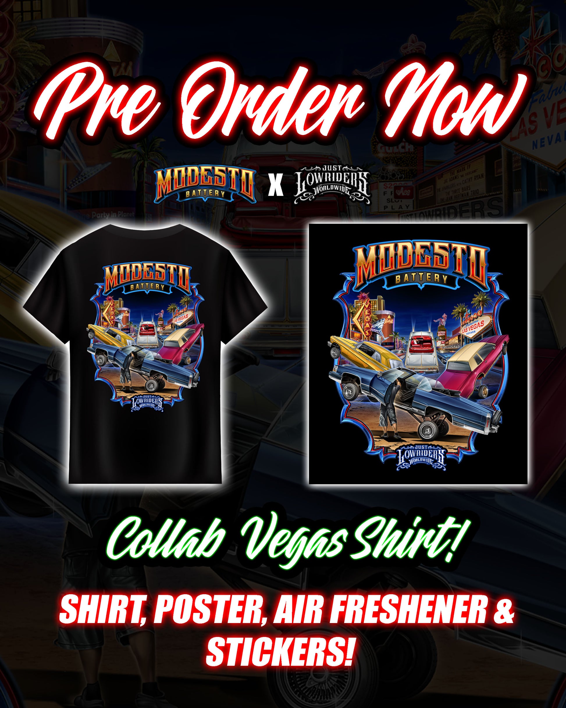 PRE- ORDER our exclusive collab Vegas Shirt & get FREE shipping! Get the shirt, a poster, air fresheners, and stickers!🔥Â